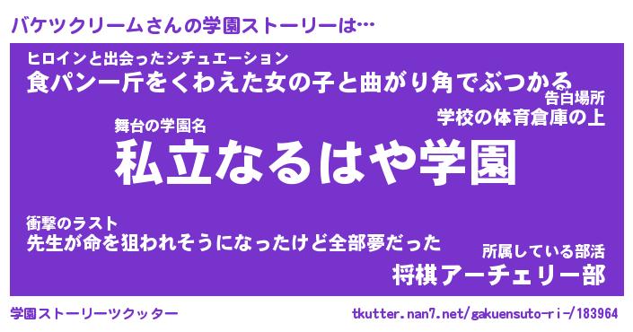 | 男性向けラノベタイトル風あだ名 | 『バケツクリームの憂鬱』 |