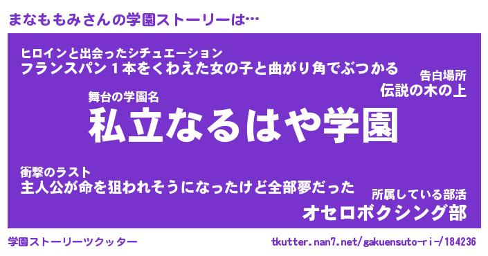 | 男性向けラノベタイトル風あだ名 | 『まなももみの憂鬱』 |