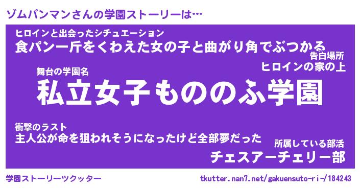 | 男性向けラノベタイトル風あだ名 | 『ゾムパンマンアートオンライン』 |