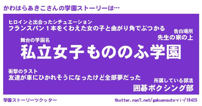 | 女子向けラノベタイトル風あだ名 | 『かわはらあきこ姫と円卓の騎士』 |