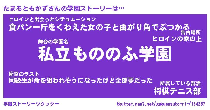 | 男性向けラノベタイトル風あだ名 | 『たまるともかずの憂鬱』 |