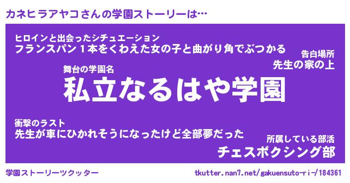 | 告白場所 先生の家の上 …「ふぃぎゅこ」 | 2月17日 06:24 |