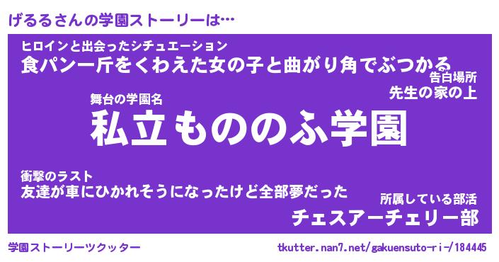 | 男性向けラノベタイトル風あだ名 | 『げるるの憂鬱』 |