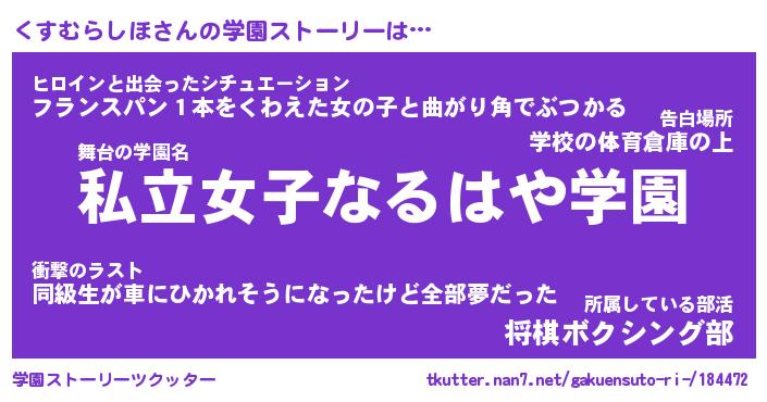 | 女子向けラノベタイトル風あだ名 | 『くすむらしほ姫と円卓の騎士』 |