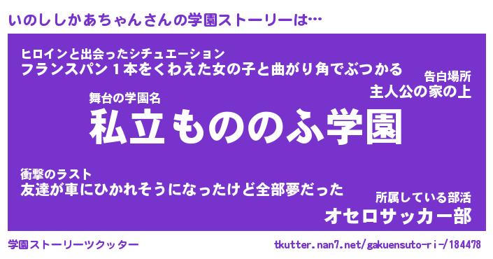 | 男性向けラノベタイトル風あだ名 | 『いのししかあちゃんの憂鬱』 |