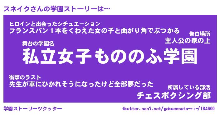 | 女子向けラノベタイトル風あだ名 | 『誰かこのスネイクを説明してください! ~契約から始まるウェディング~』 |