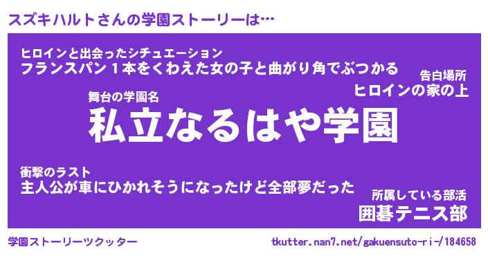 | 男性向けラノベタイトル風あだ名 | 『スズキハルトの憂鬱』 |