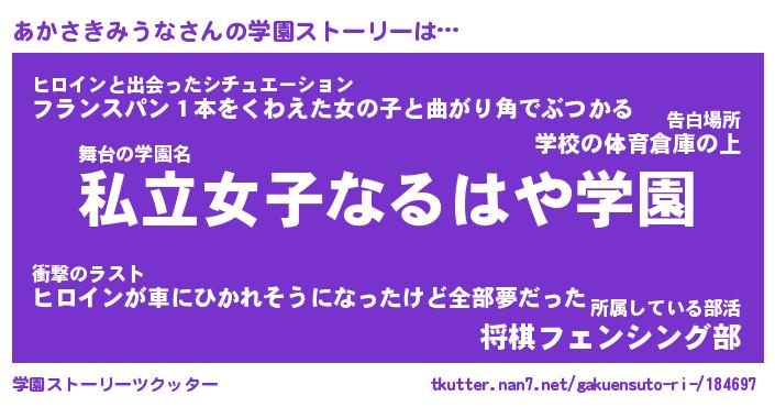 | 伝説のあだ名 | 『不死鳥のスナイパーあかさきみうな』 |