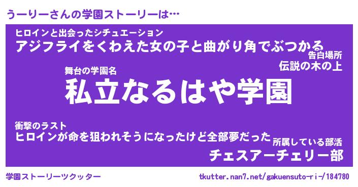 | 女子向けラノベタイトル風あだ名 | 『うーりー姫と円卓の騎士』 |