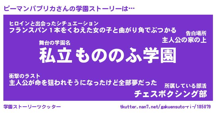 | 女子向けラノベタイトル風あだ名 | 『(仮)ピーマンパプリカのやんごとなき事情』 |