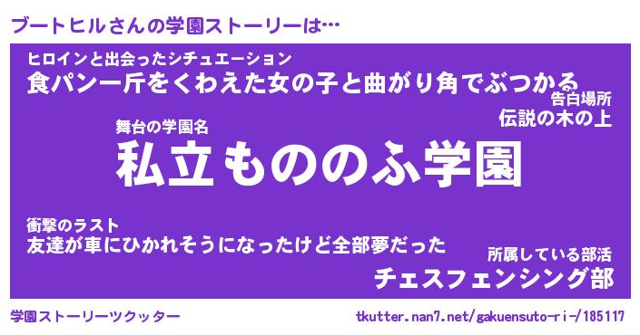 | 男性向けラノベタイトル風あだ名 | 『ブートヒルの憂鬱』 |