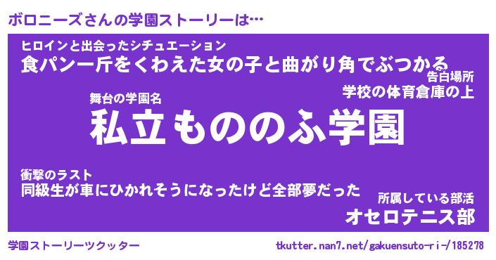| ファンタジー風あだ名 | 『ボロフェル』『エターナルボロニーズー』 |