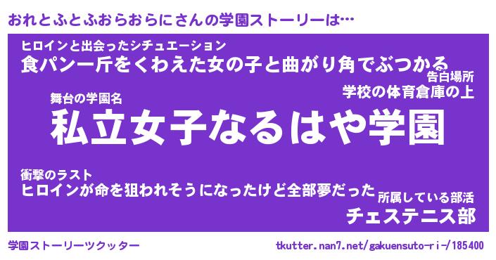 | 告白場所 先生の家の上 …「ふぃぎゅこ」 | 2月17日 06:24 |