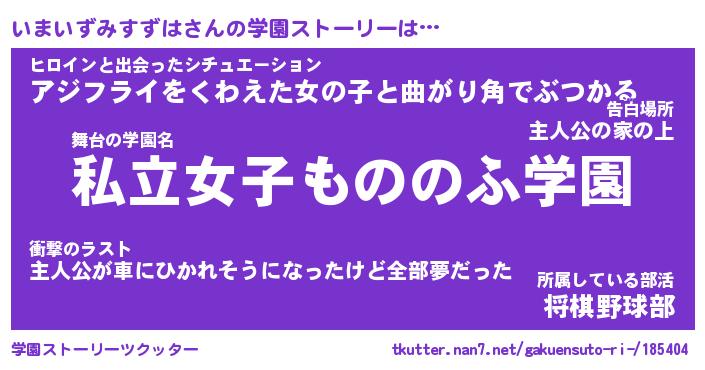 | 女子向けラノベタイトル風あだ名 | 『いまいずみすずは姫と円卓の騎士』 |