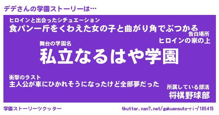 | ファンタジー風あだ名 | 『デデフェル』『エターナルデデー』 |