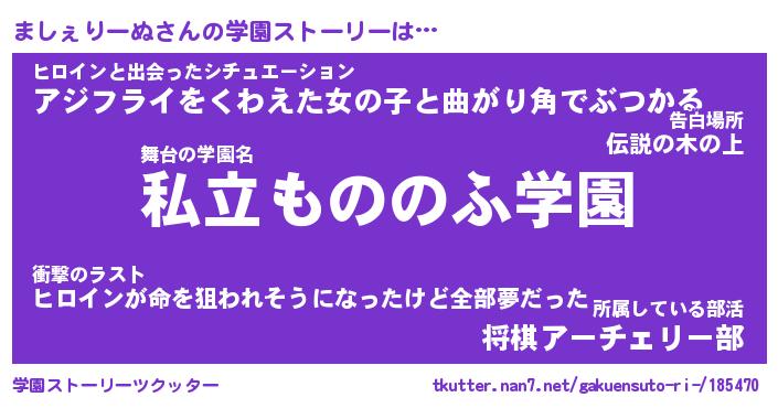 | 男性向けラノベタイトル風あだ名 | 『ましぇりーぬの憂鬱』 |
