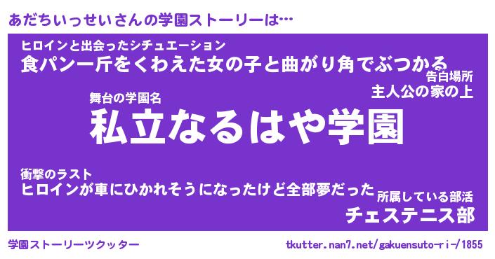 | 女子向けラノベタイトル風あだ名 | 『(仮)あだちいっせいのやんごとなき事情』 |