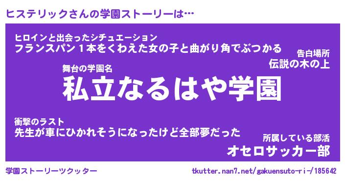 | 女子向けラノベタイトル風あだ名 | 『(仮)ヒステリックのやんごとなき事情』 |