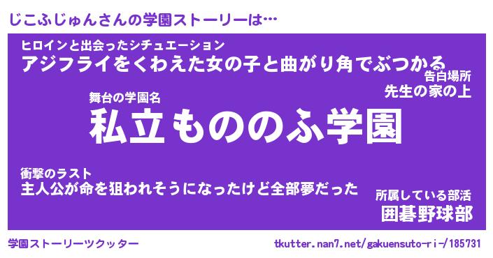 | 男性向けラノベタイトル風あだ名 | 『じこふじゅんの憂鬱』 |