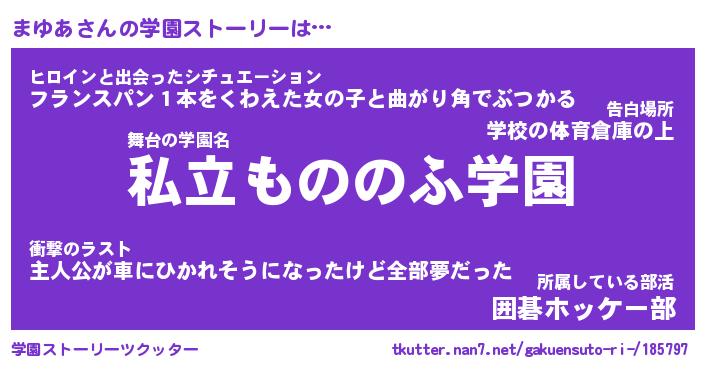 | ファンタジー風あだ名 | 『マユフェル』『エターナルマユアー』 |