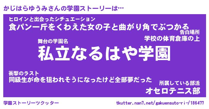 | 男性向けラノベタイトル風あだ名 | 『かじはらゆうみの憂鬱』 |