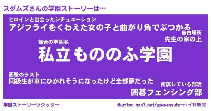 | 男性向けラノベタイトル風あだ名 | 『スダムズの憂鬱』 |