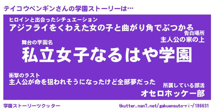| 男性向けラノベタイトル風あだ名 | 『テイコウペンギンアートオンライン』 |