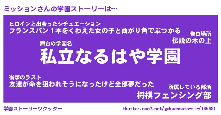 | 女子向けラノベタイトル風あだ名 | 『(仮)ミッションのやんごとなき事情』 |