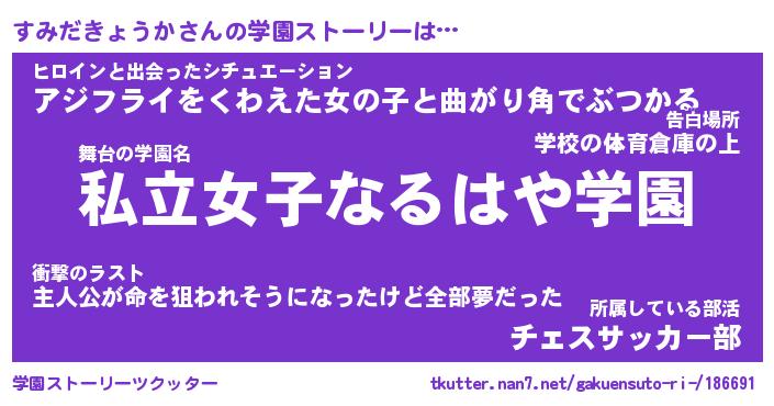 | 伝説のあだ名 | 『封印されしスナイパーすみだきょうか』 |