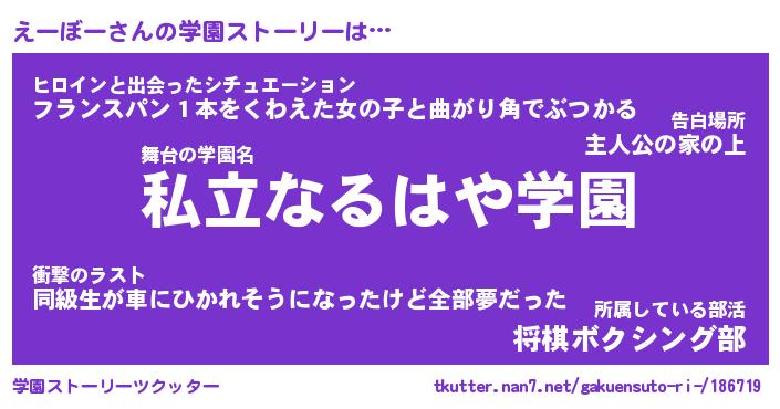 | 女子向けラノベタイトル風あだ名 | 『(仮)えーぼーのやんごとなき事情』 |