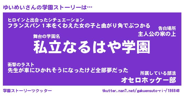 | 女子向けラノベタイトル風あだ名 | 『(仮)ゆいめいのやんごとなき事情』 |