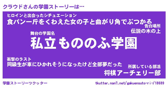 | ヒーロー風カッコイイあだ名 | 『スーパークラウド』『魔戒騎士クラ』 |