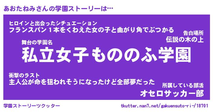 | ファンタジー風あだ名 | 『アオフェル』『エターナルアオタネミー』 |