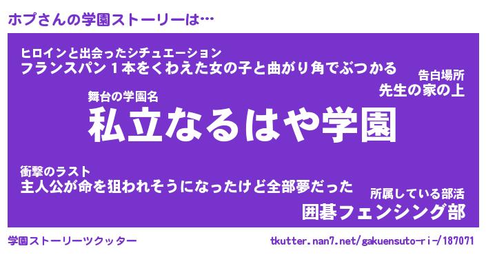 | 告白場所 先生の家の上 …「ふぃぎゅこ」 | 2月17日 06:24 |