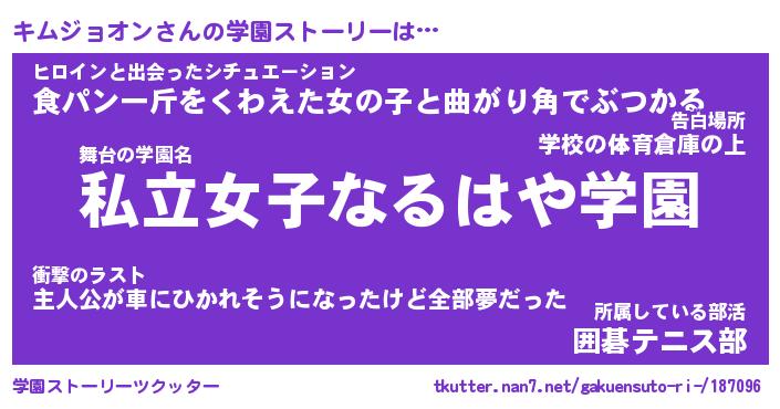 | 男性向けラノベタイトル風あだ名 | 『キムジョオンアートオンライン』 |