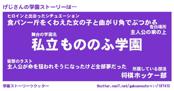 | 男性向けラノベタイトル風あだ名 | 『げじの憂鬱』 |