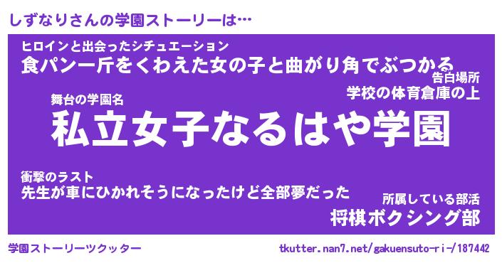| 意味不明あだ名 | 『ペロリンしずなり』『永久保存しずなり』 |
