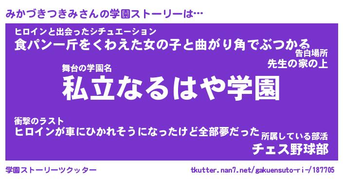| 伝説のあだ名 | 『伝説のスナイパーみかづきつきみ』 |