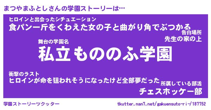 | 男性向けラノベタイトル風あだ名 | 『まつやまふとしの憂鬱』 |