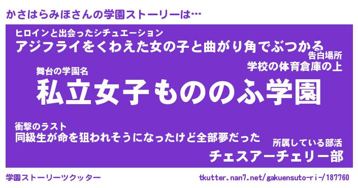 | ヒーロー風カッコイイあだ名 | 『スーパーカサハラミホ』『炎刃騎士カサ』 |