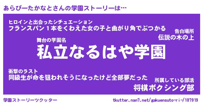 | 肩書あだ名 | 『あらぴーたかなと社長令嬢』 |