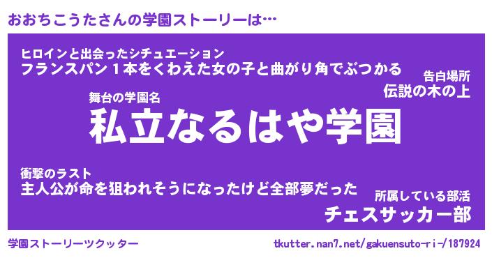 | 告白場所 先生の家の上 …「ふぃぎゅこ」 | 2月17日 06:24 |