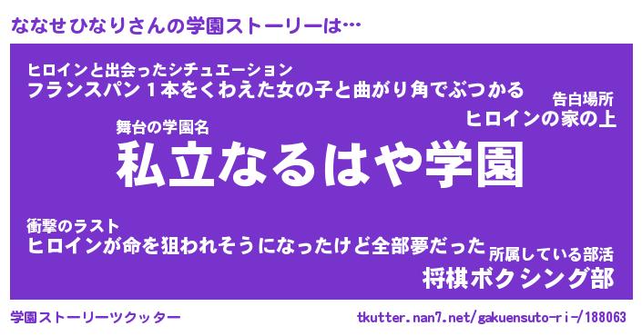 | 胡散臭い通販商品みたいなあだ名 | 『モテモテ間違いなし霊験あらたかなお札…その名も「ななせひなり」』 |