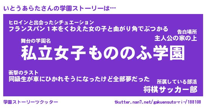 | 男性向けラノベタイトル風あだ名 | 『イトウアラタアートオンライン』 |