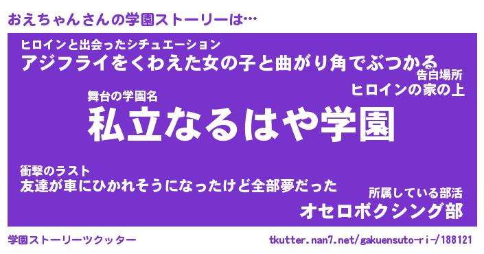 | 告白場所 先生の家の上 …「ふぃぎゅこ」 | 2月17日 06:24 |