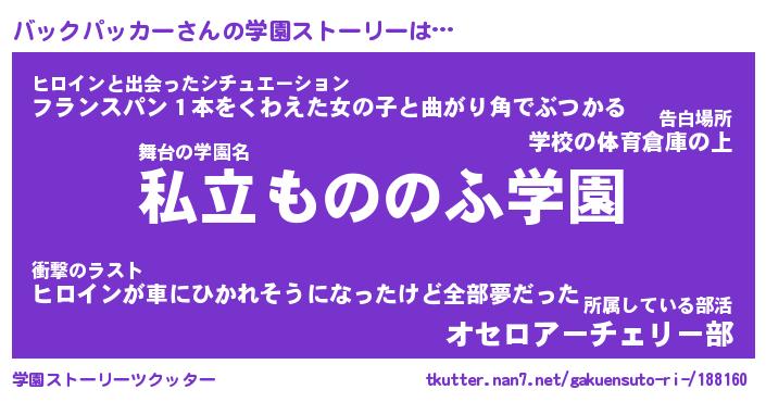| 男性向けラノベタイトル風あだ名 | 『バックパッカーの憂鬱』 |