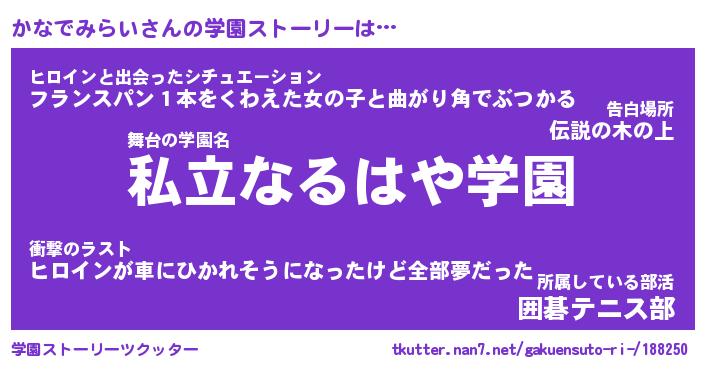 | 男性向けラノベタイトル風あだ名 | 『かなでみらいの憂鬱』 |