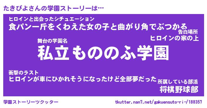 | 男性向けラノベタイトル風あだ名 | 『たきぴよの憂鬱』 |