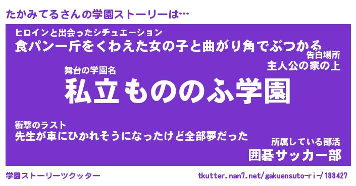 | 告白場所 先生の家の上 …「ふぃぎゅこ」 | 2月17日 06:24 |