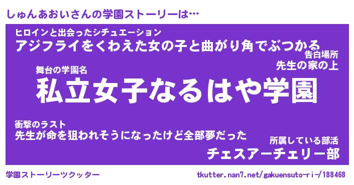 | 女子向けラノベタイトル風あだ名 | 『しゅんあおい姫と円卓の騎士』 |